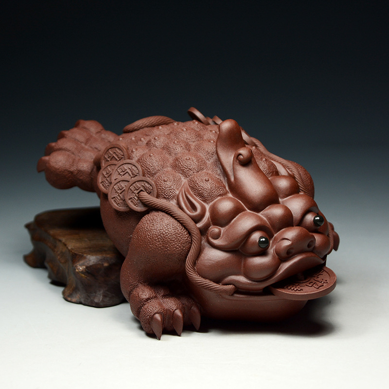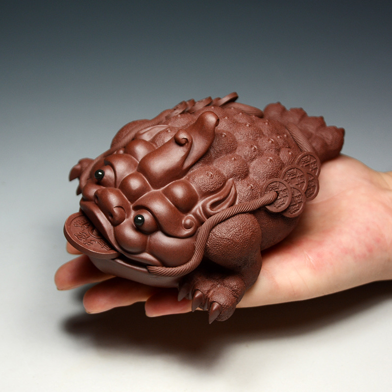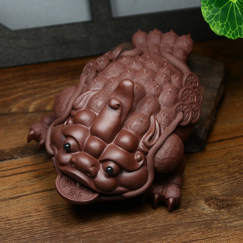 Can raise lucky three-legged toad tea pet golden toad pure handmade Yixing purple sand ornaments boutique tea play