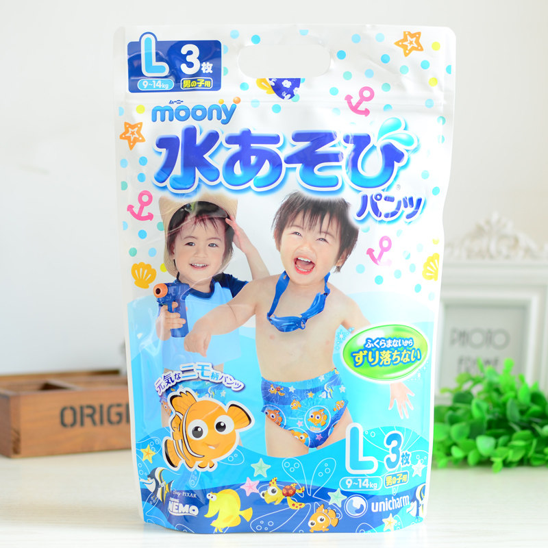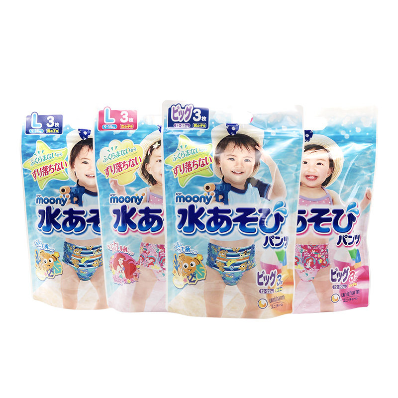 Japan's Unicharm baby swimming trunks disposable baby waterproof diaper beach pants 3 pieces M L XL remarks