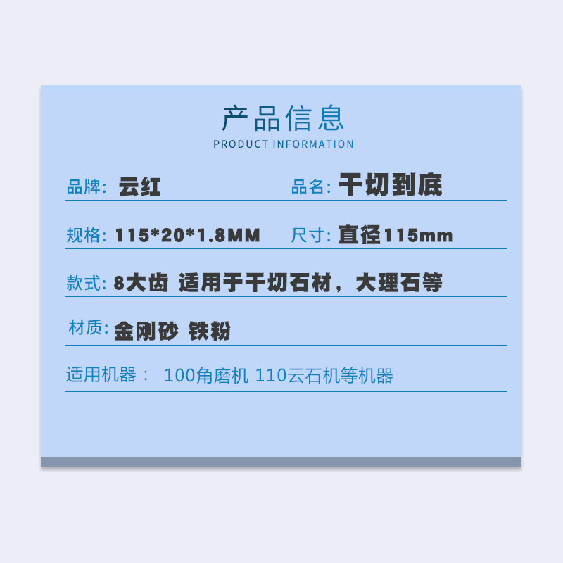Cloud red 115 dry cut to the bottom marble granite rock material cut sheet cloud stone machine angle mill diamond saw blade