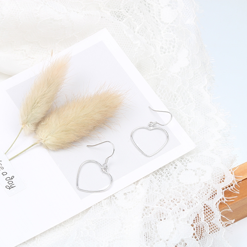 s925 Pure Silver Loving Earrings Woman Temperament South Korea Brief 100 hitch fit for round-face summer peach heart earrings