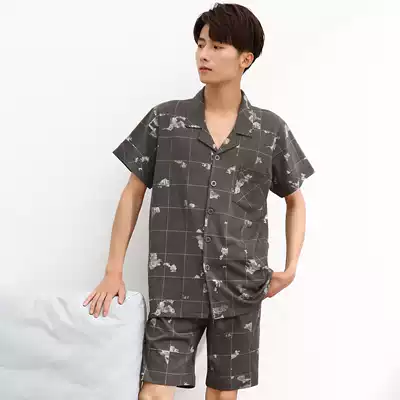 Duoqiamei men's pajamas summer cotton suit short-sleeved shorts thin home clothes casual large size cotton summer