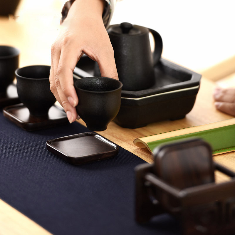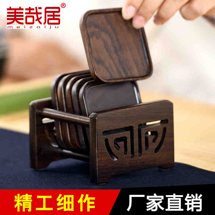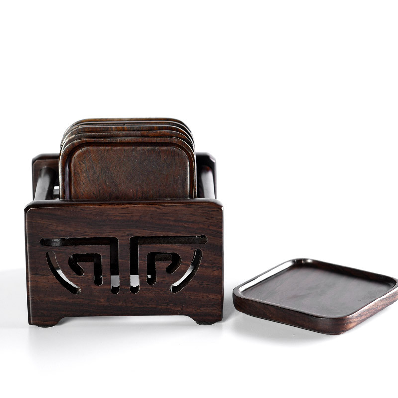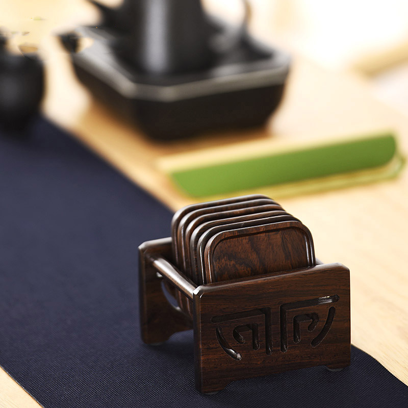 Kung Fu tea accessories solid wood six gentlemen coaster set chicken wings ebony tea ceremony utensils coaster combination