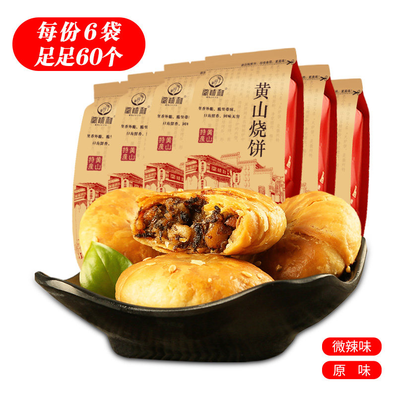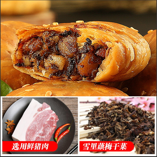 Anhui Tproduction Zhengzong Huangshan Baking Cake 60 Megan Vegetable Buckle Meat Cake Handmade Gourmet small snack Snack Cake