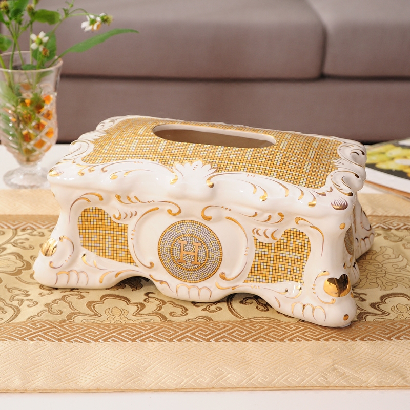 European high-grade ceramic tissue box H-standard toilet paper box Napkin box Living room home decoration coffee table ornaments