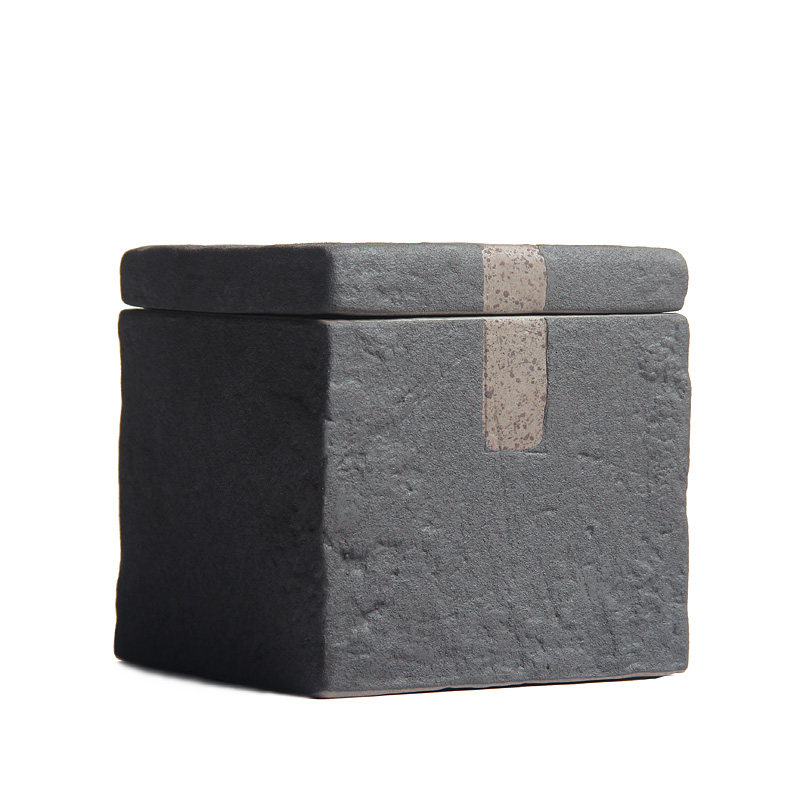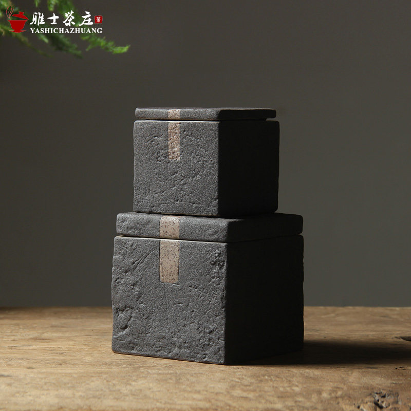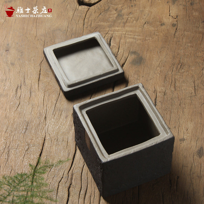 Japanese style simple tea pot Square Puer tea pot Non-sealed rock mud tea warehouse Coarse pottery portable retro tea storage tank