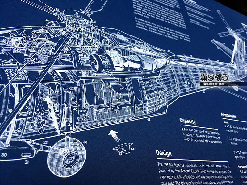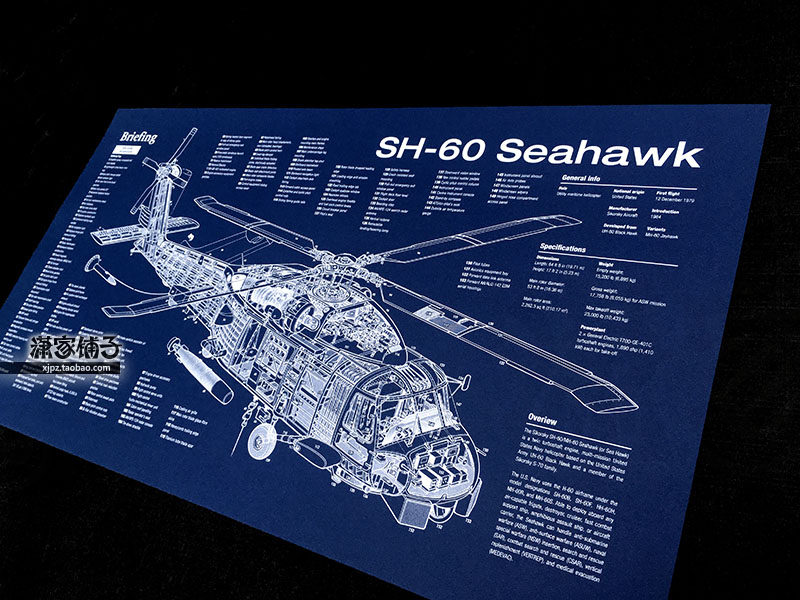 UH-60 Black Eagle SH-60 Seahawks (Suit) Helicopter Blueprint Structural Drawings Poster for Decorative Painting-Taobao