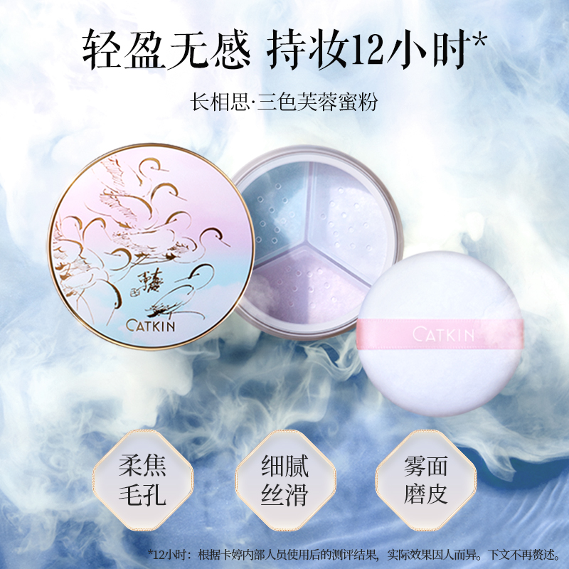 Katin Three-color powder Loose powder Makeup powder Oil control Waterproof sweat does not take off makeup Long-lasting powder Cake dry skin concealer dry powder