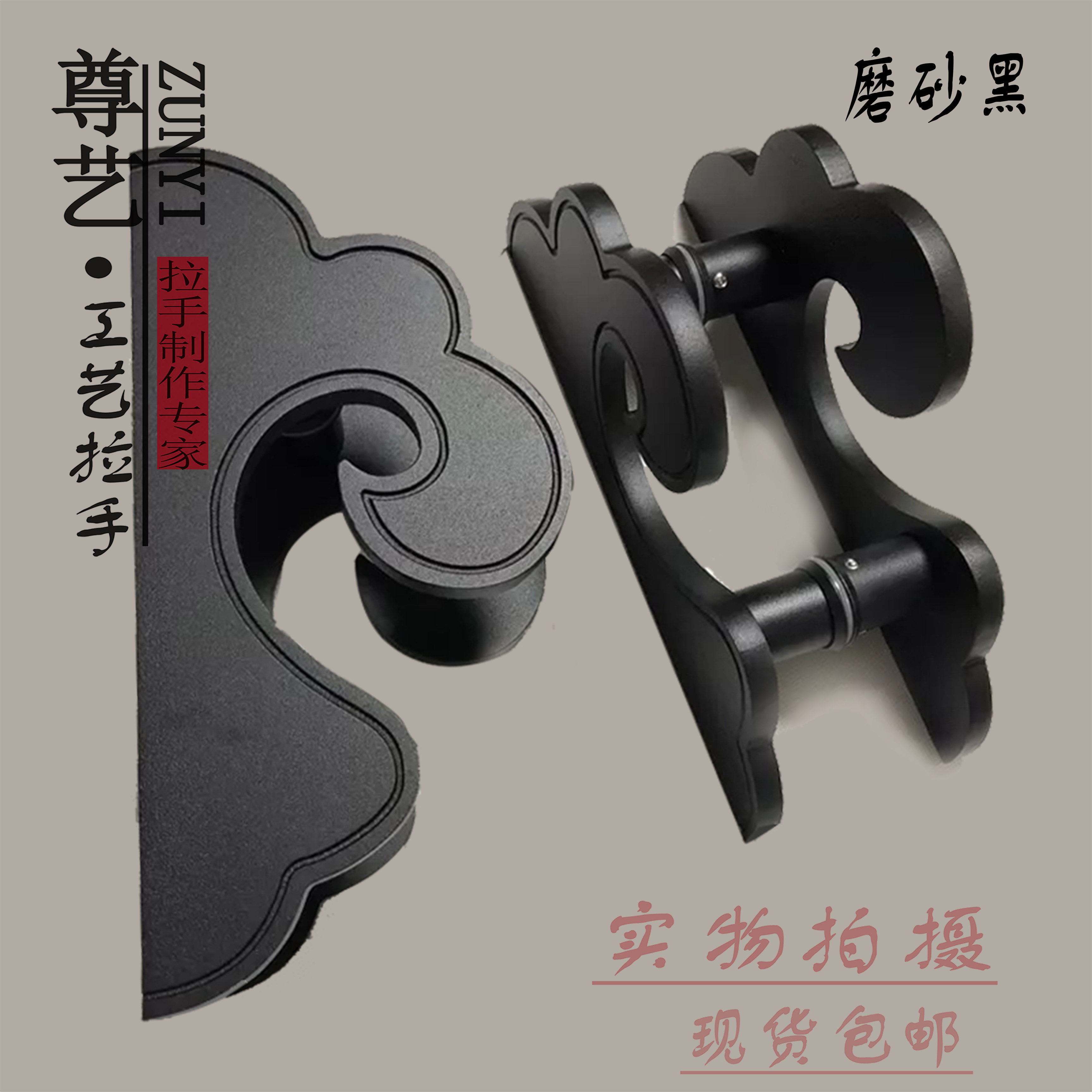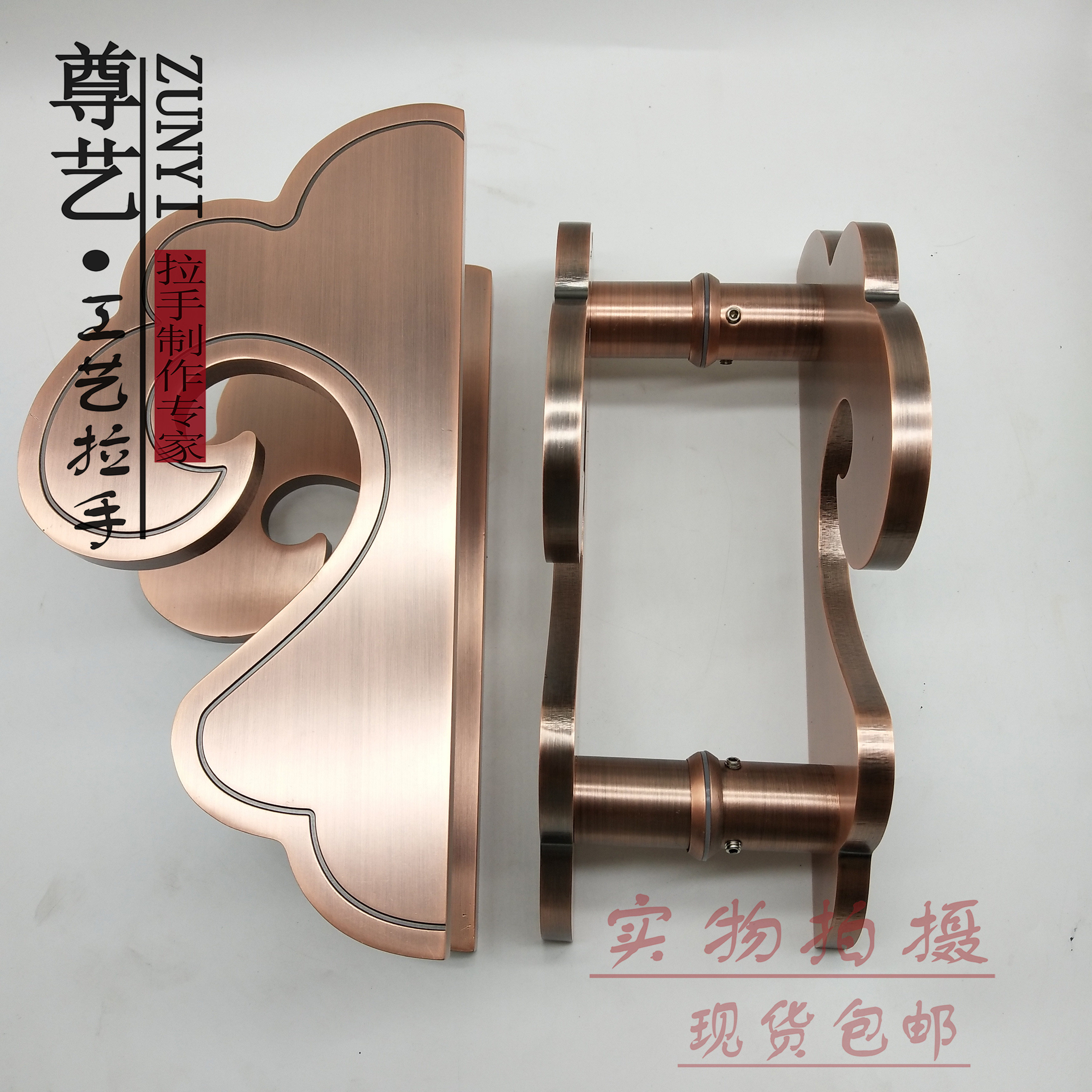 Imitation ancient large door handle glass door Chinese metal ancient bronze door handle semi-circular bag door aluminium alloy handle