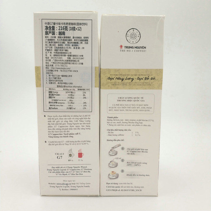 Central Plains G7 Capuccino Hazelnuts Fruity Morka Taste Three-in-one Instant Coffee 216g (18gx12) Two Boxes