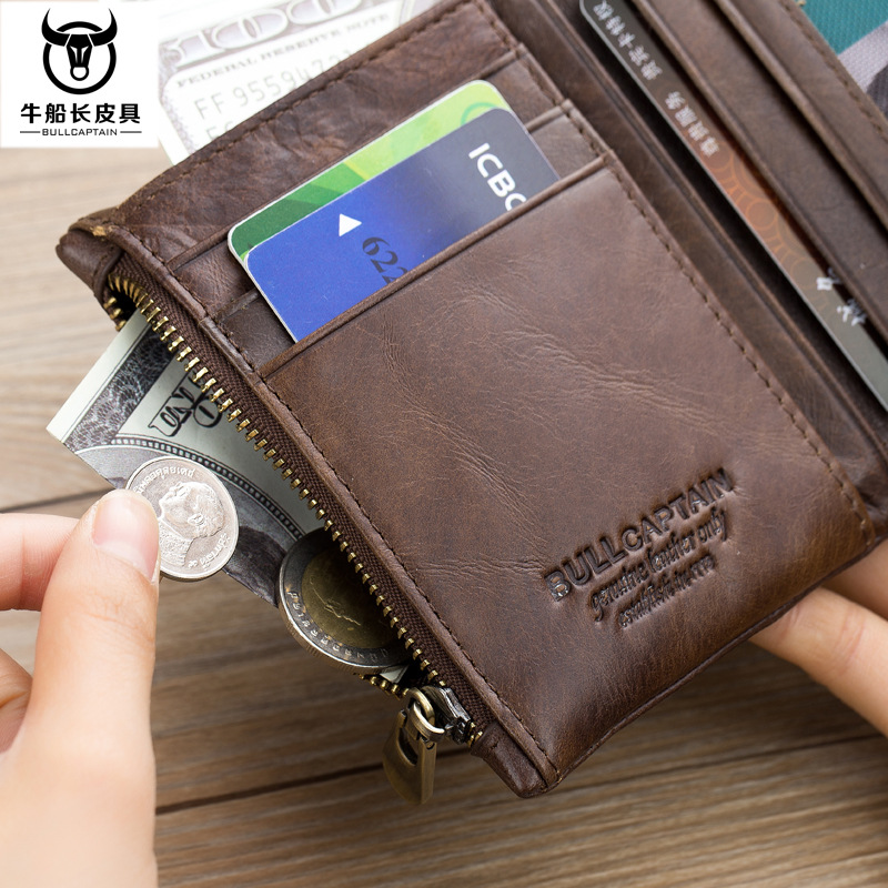 Tide Men's Leather Men's Wallet Vertical Short Folding Multi-function Leather Clock Driver's License Wallet