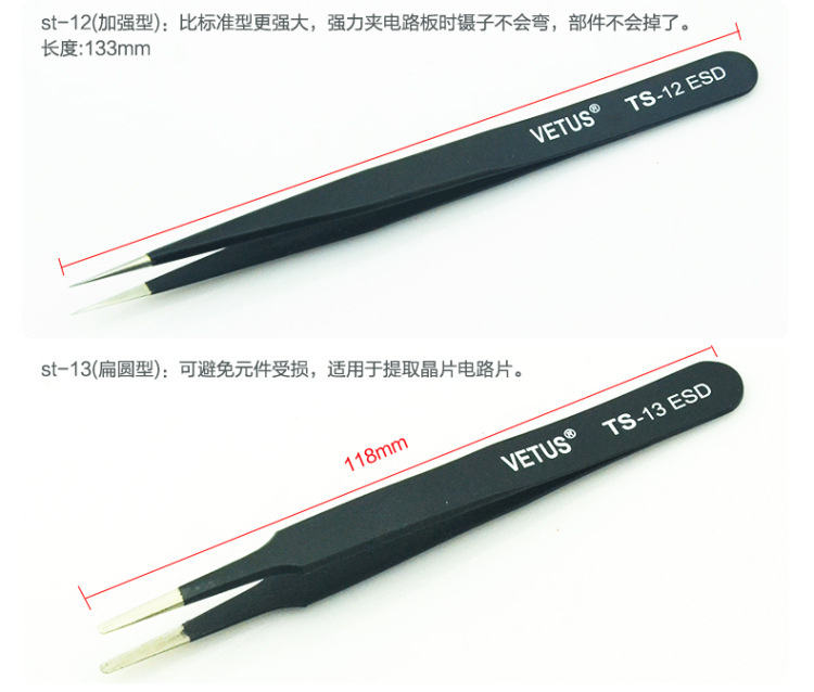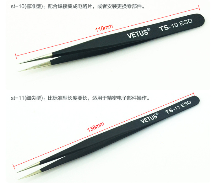 Antistatic Stainless Steel Tweezers Slender Tip High Quality Industrial Hardened Elbow High Elasticity