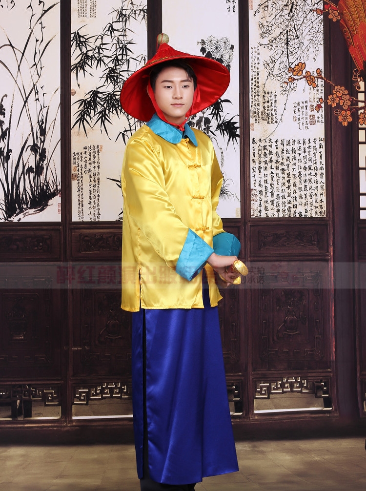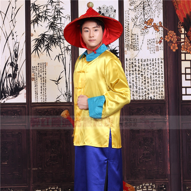 The ancient men and Qing Dynasty court with knife guard officers and soldiers to serve the Yellow Ma coat show rental