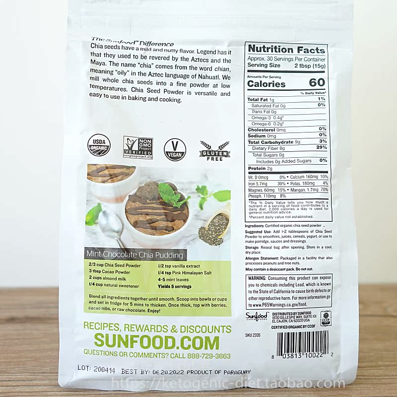 Spot Sunfood Chia Seed Powder cold grinding raw chaiseed powder gluten-free and low-carbon