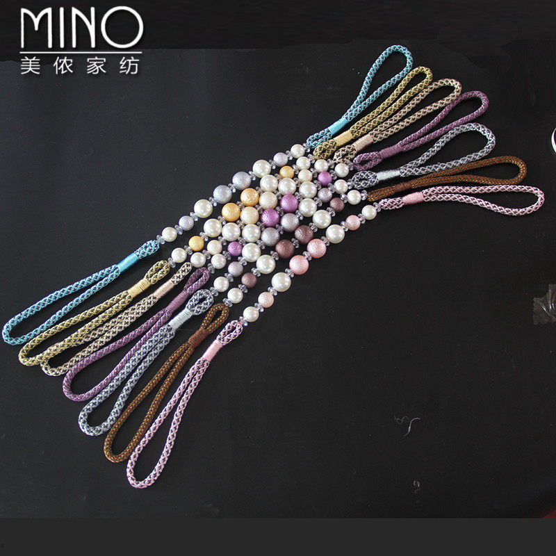 European high-end pearl curtains with simple modern beads binding rope and living room bedroom curtain buckle