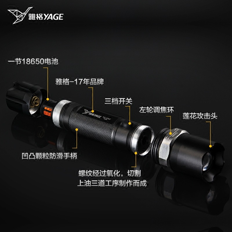 Yage flashlight YG-336C strong light rechargeable focus long-range household outdoor riding ultra-bright 18650 battery
