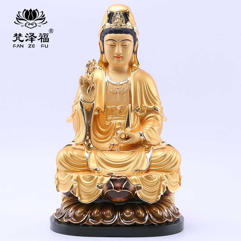 Fan Zefu Great Wish Taiwan pure copper gilt Guanyin Bodhisattva sitting lotus dripping water Guanyin Buddha statue ornaments for worship