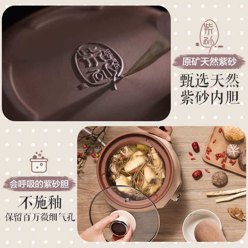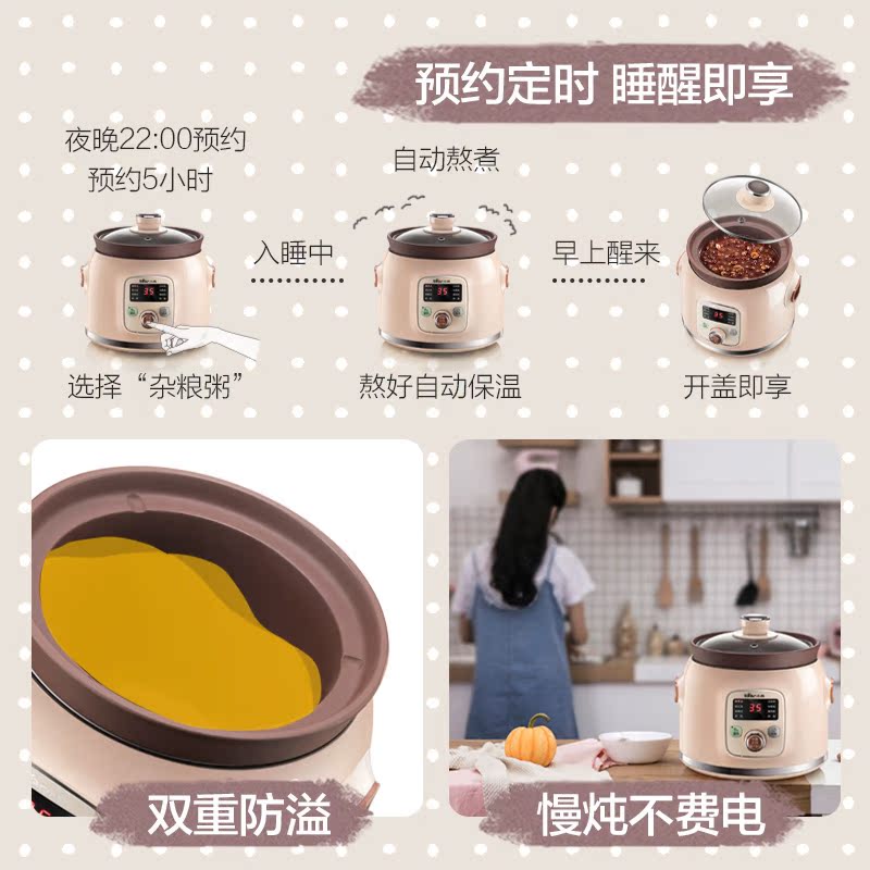 Little bear purple casserole soup electric cooker small household ceramic fully automatic boiling porridge pot artifact electric stew Cup 1-2 people 3