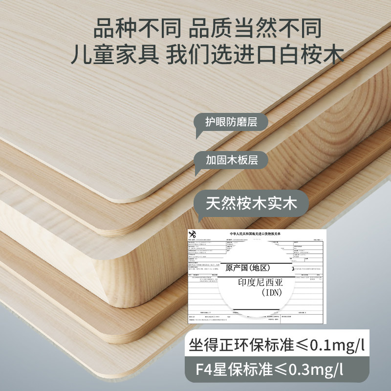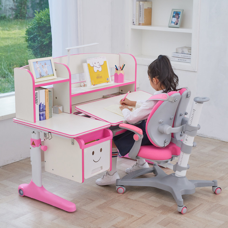Sitting is solid wood children's study desk Middle school students desk bookshelf Desk chair set Children's homework desk