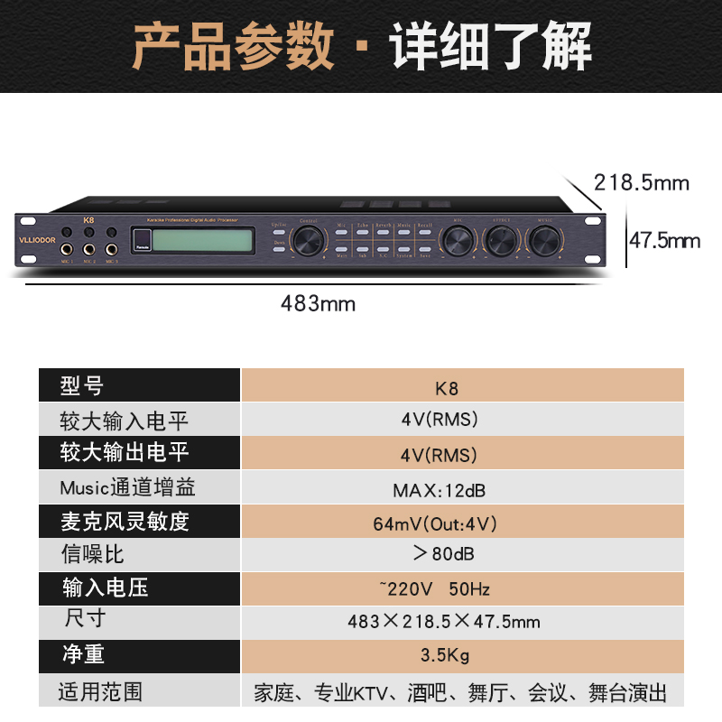 VLLIODOR K8 digital pre-stage effector stage professional KTV anti-whistle audio processor