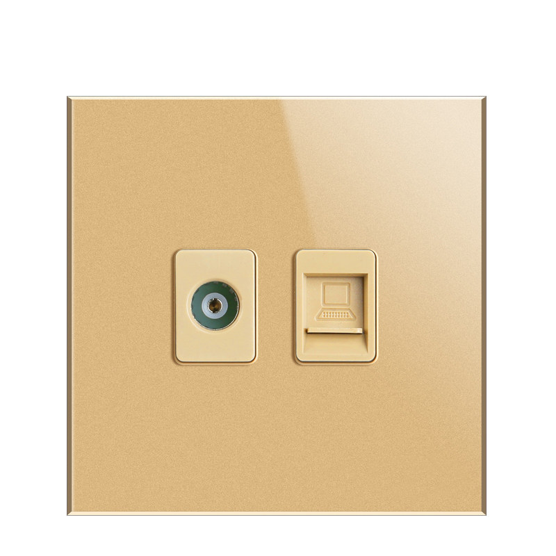 Computer TV smart switch socket tempered glass panel network cable cable socket type 86