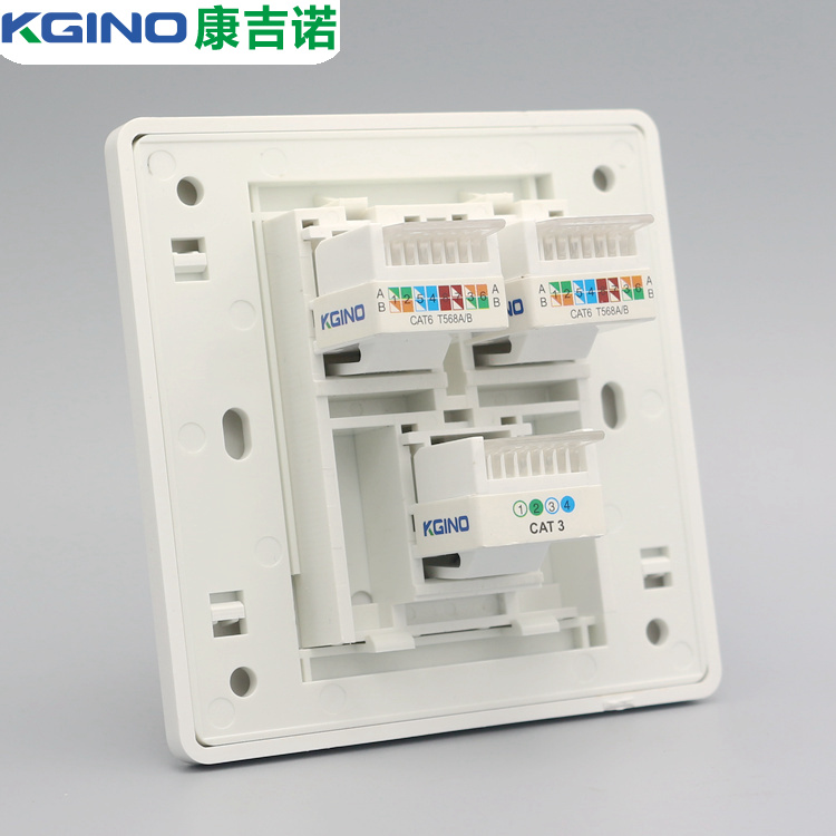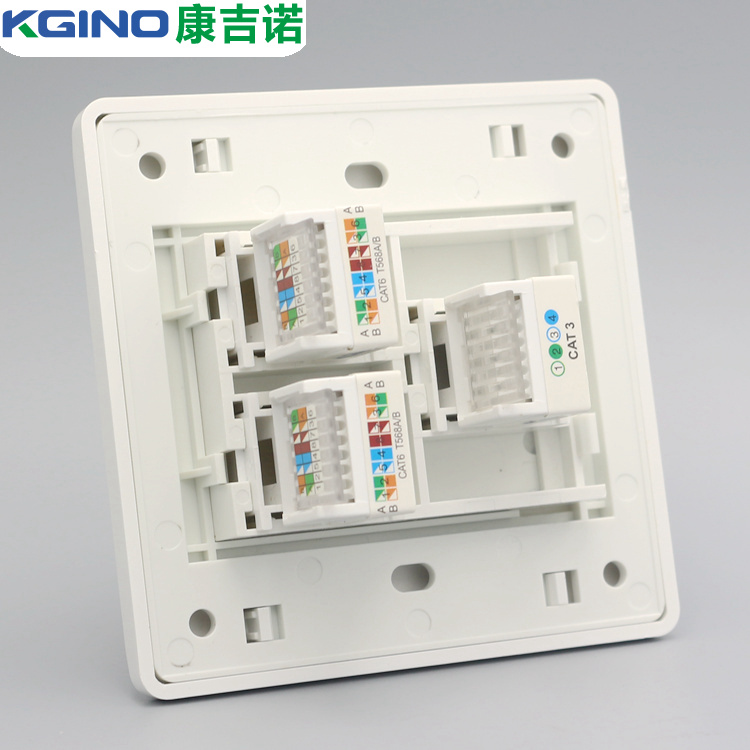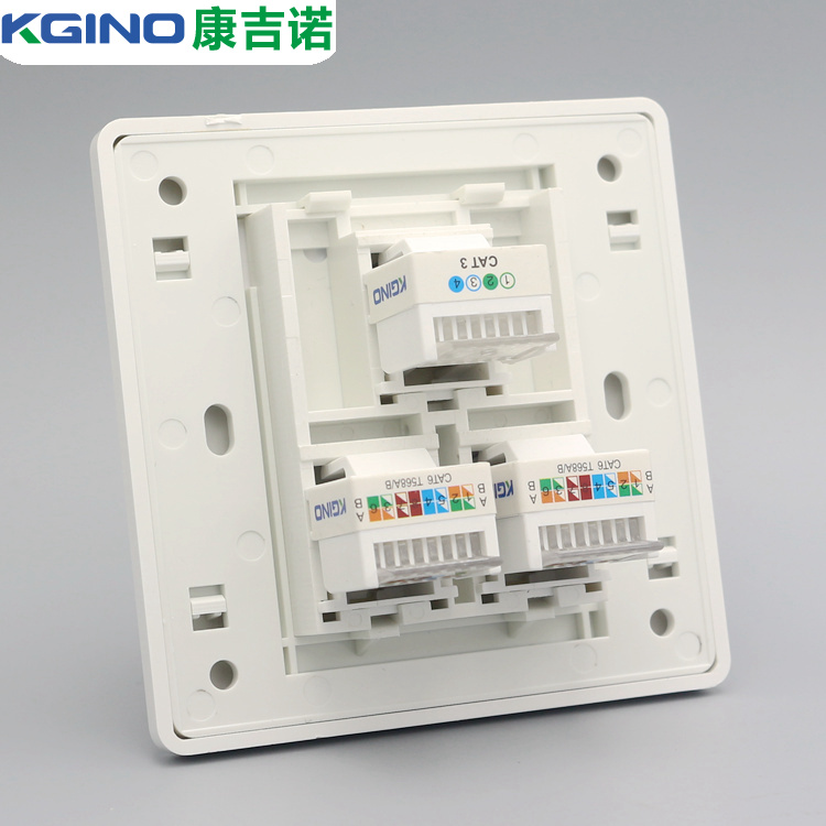 Type 86 Three-port Computer Phone wall socket Six-type Internet module Double network wire One telephone line socket Panel