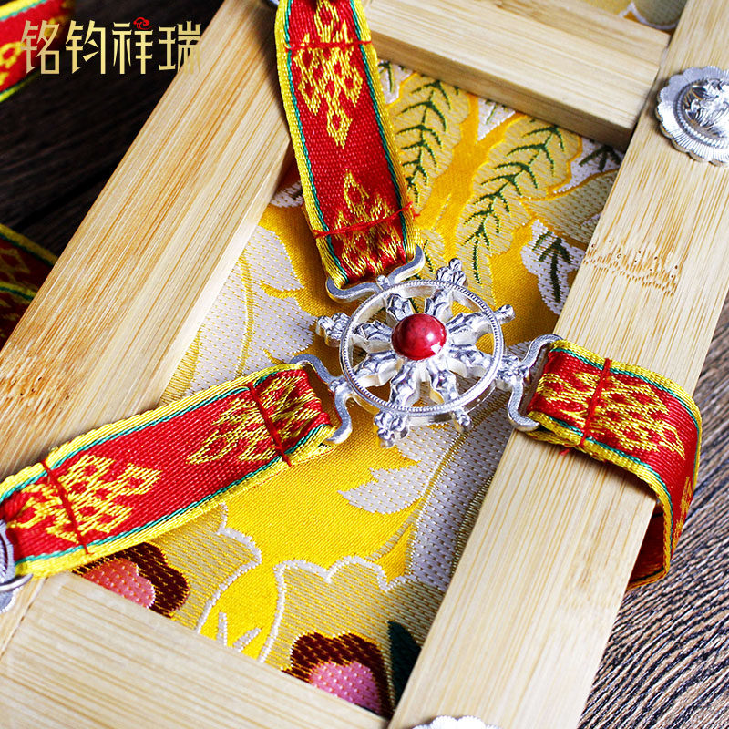 Tibetan-style scripture folder Tibetan supplies bamboo satin pattern hand-wrapped scripture folder to protect scriptures scripture bag scriptures