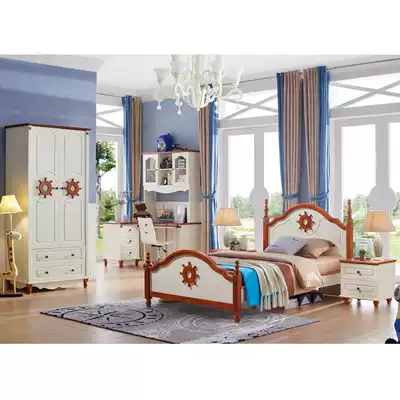 Mediterranean style wardrobe boys and girls solid wood children's room wardrobe wooden two door three door four door Children's wardrobe
