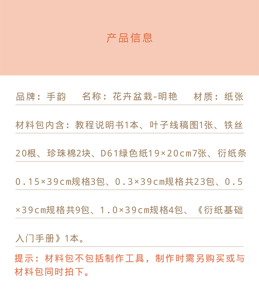 Material package (without tools) Tool (six-piece set) Material package Tool Amos imported quick-drying glue (recommended by the shopkeeper), boutique tassel scissors (recommended by the shopkeeper), rolling paper and fine pen (recommended by the shopkeeper)