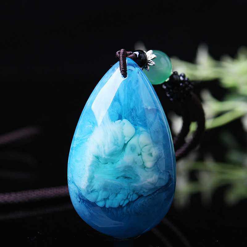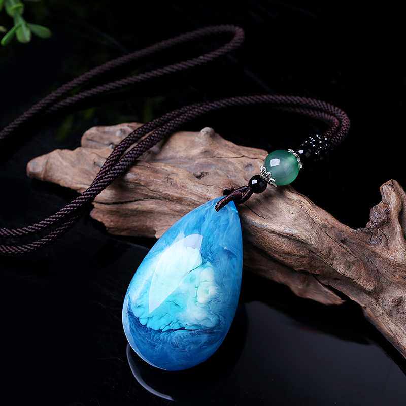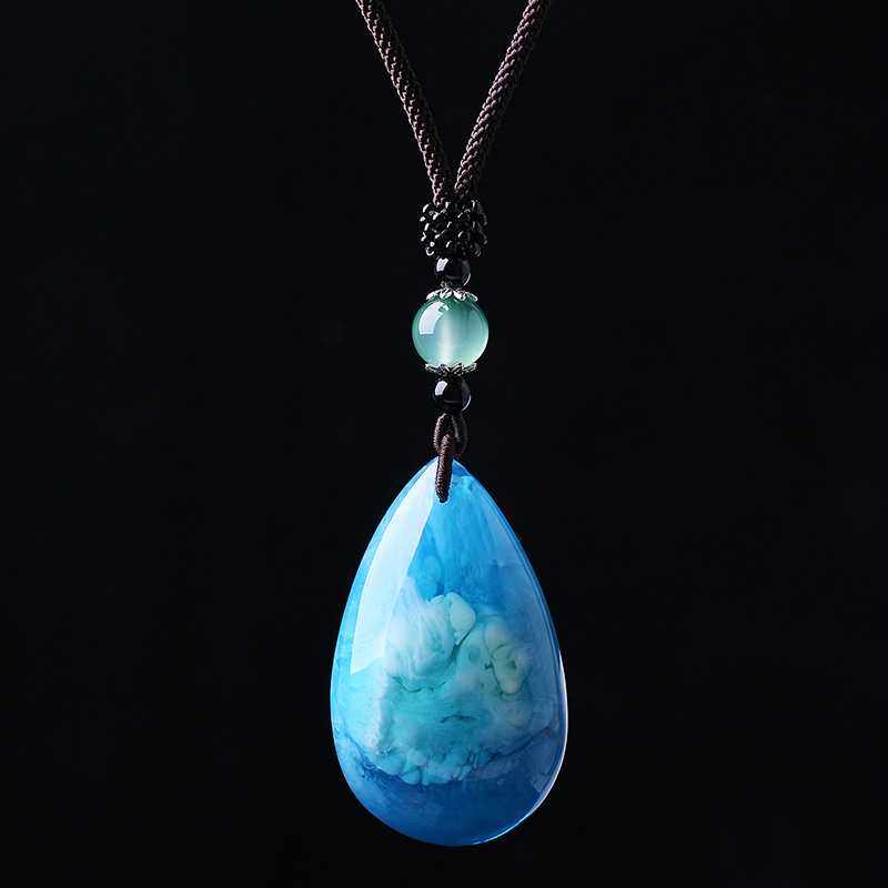 Honey Wax Pendant Female Long Version Blue Amber Drop Sweater Necklace Blue Silk Peramber Necklace Male National Wind Rope Pendant Pendant