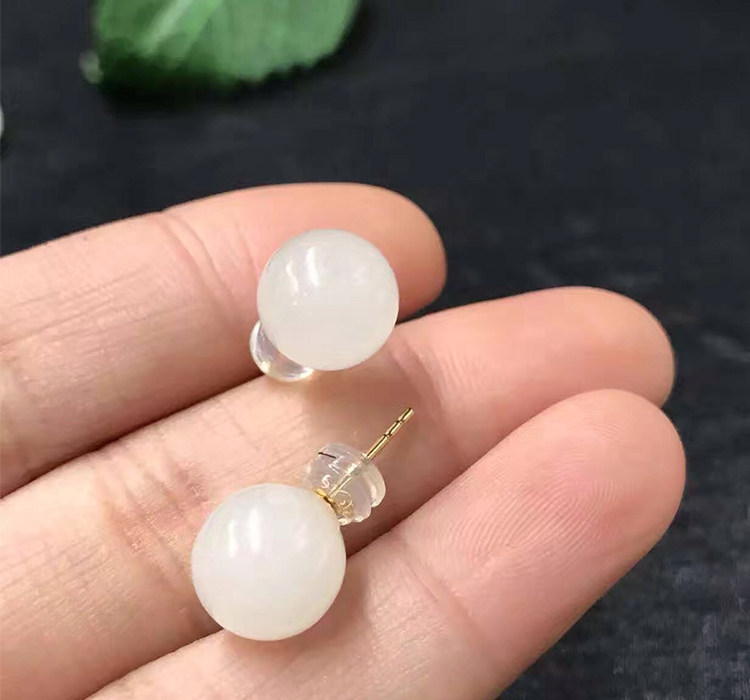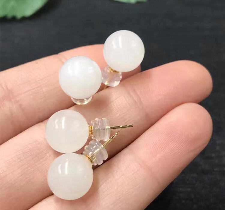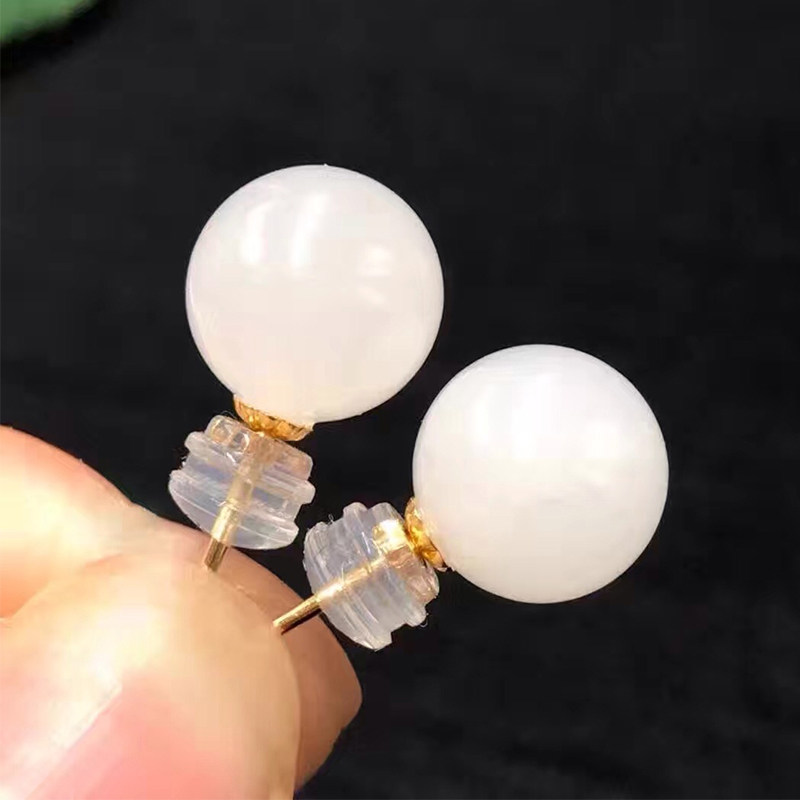18K yellow gold Hetian jade ear pin gold inlaid jade earrings earrings earrings natural suet white jade grade certificate