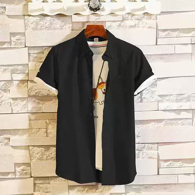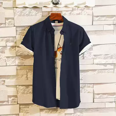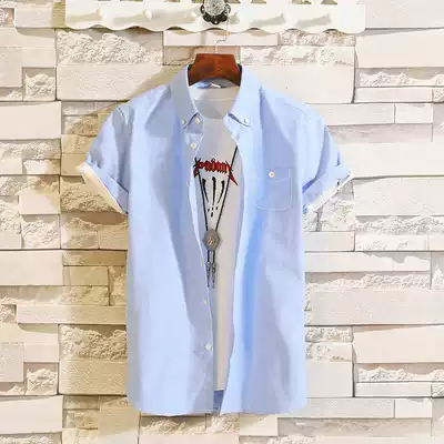 ins Solid Color Men Short Sleeve Shirt Summer Thin Fashion Half sleeve Shirt British Teen Mid Sleeve Inch Clothes
