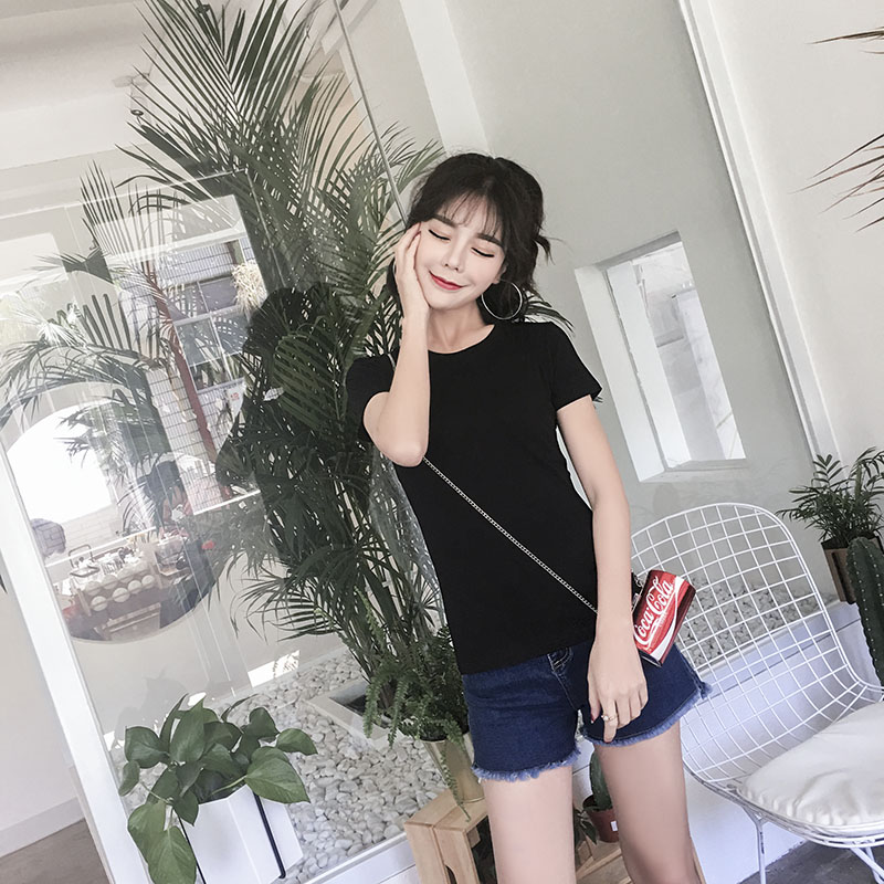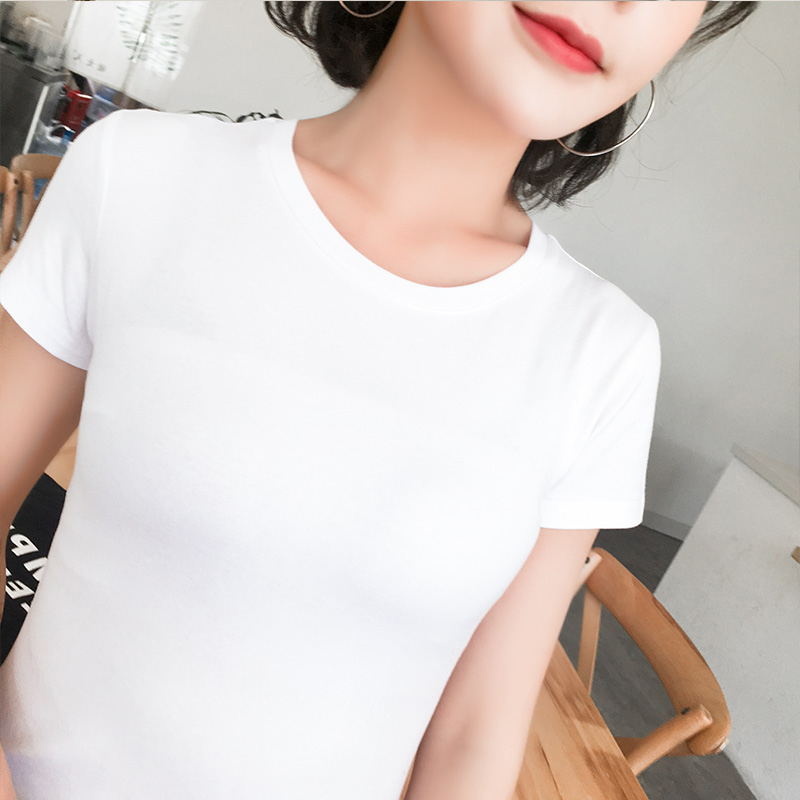 2018 new pure cotton white T-shirt female short sleeve sashimi skinnier with bottom T-shirt minimalist about black blouses