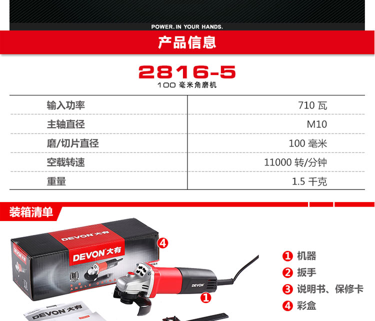 DEVON Large angle grinder Multi-function cutting machine Polishing and grinding machine Power tools angle grinder 2816