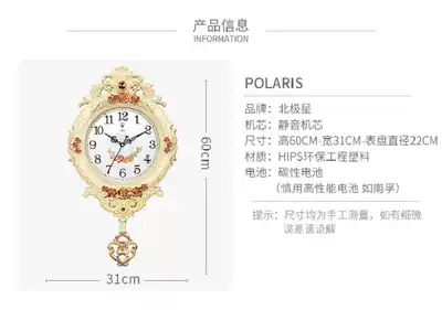 Polaris European-style clock creative wall clock swing fashion personality Wall watch silent living room clock quartz clock home
