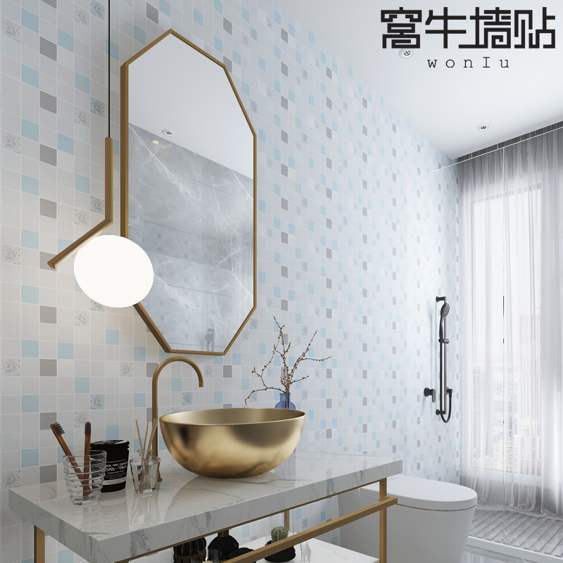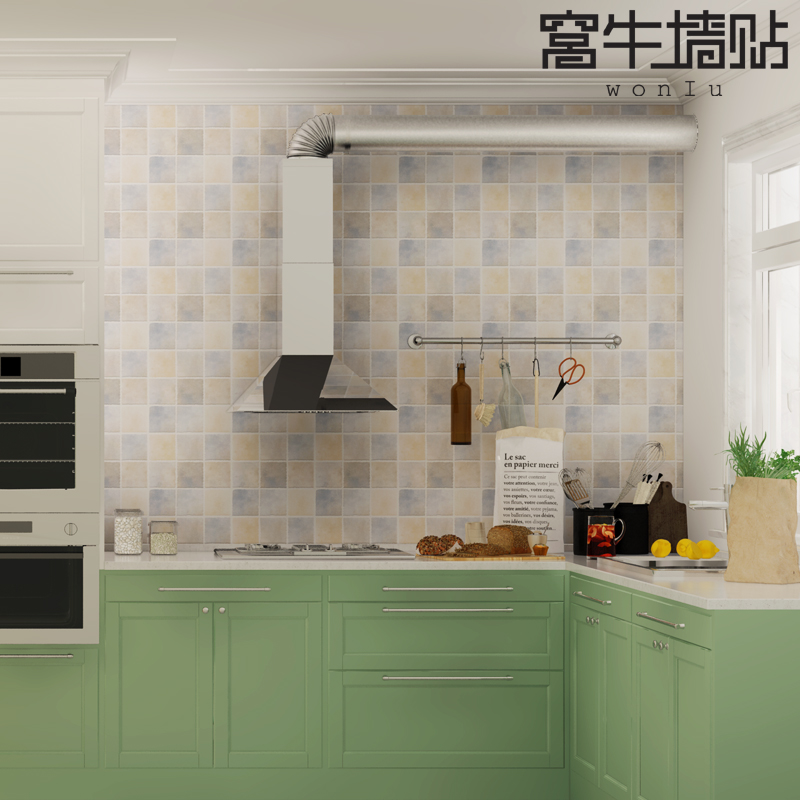 Wallpaper self-adhesive kitchen oil-proof film toilet wall stickers balcony Waterproof high temperature resistant wallpaper stickers tile stickers