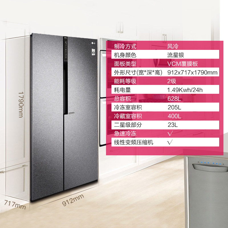 LG double door to door household intelligent refrigerator variable frequency wind refrigeration freezer GR-B2474JDR