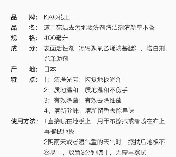 Japanese Original Flower King Floor Cleanser Spray Wooden Furniture Dry Clear To Stain Remover Grass Wood Fragrant 400ml