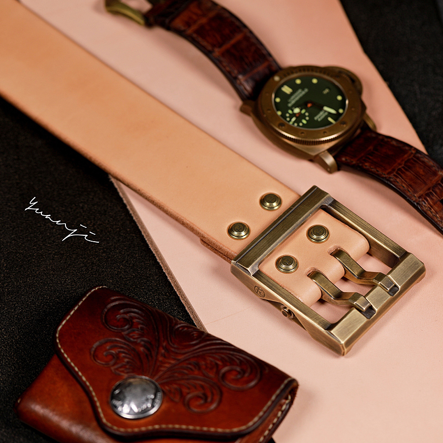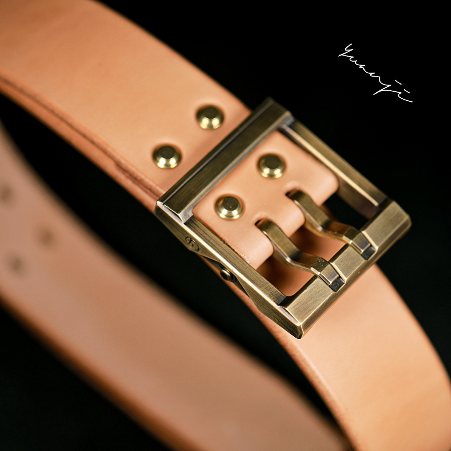 FC Wind Dust Fifth Generation 45mm Wide Brass Double Needle Belt Buckle Japanese Oak Oak Original Color Cattle Breeding Men's Belt