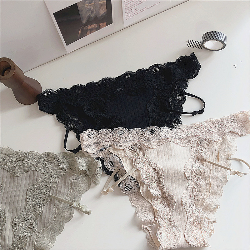 Sexy Lace Side No Mark Safety Pants Low Waist Triangle Pants Strap Carditer Comfort Breathable Bag Hip Cotton Briefs Female