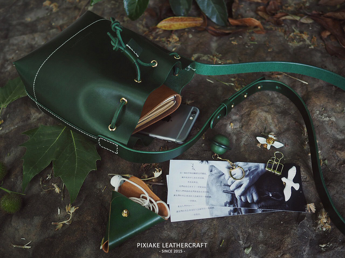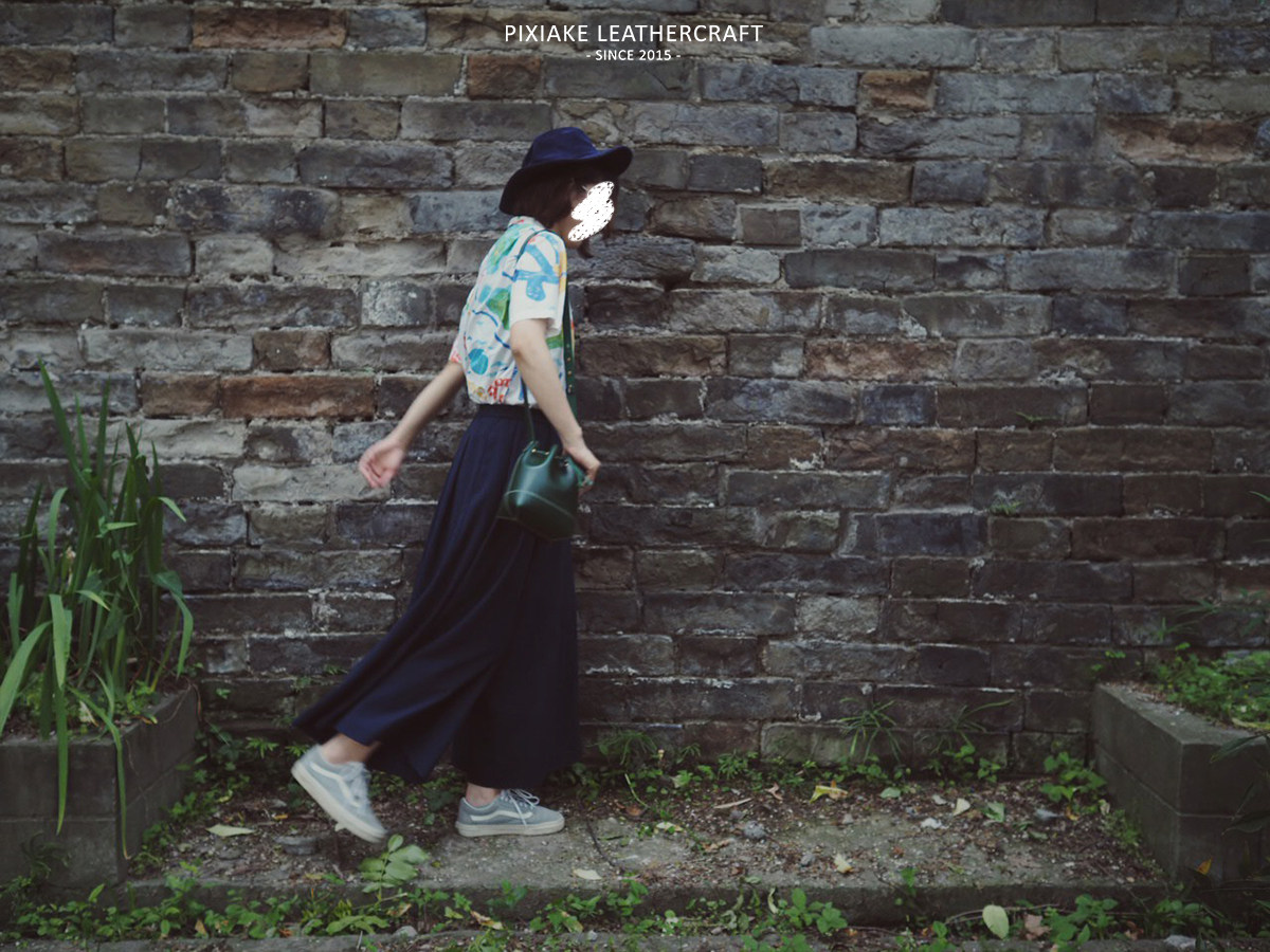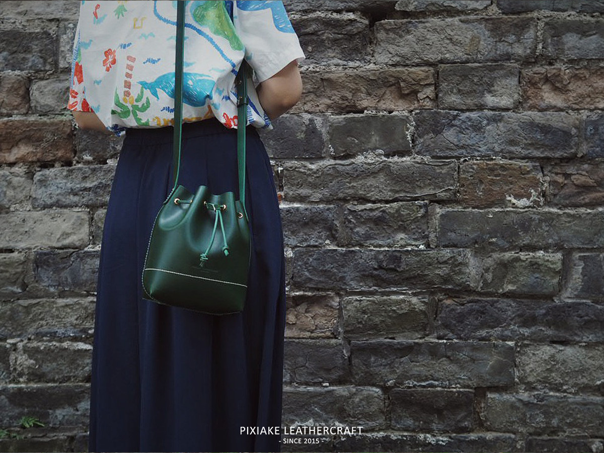 Leather Knight PXK-handmade cowhide mini bucket bag retro art art shoulder crossbody commuter women's bag lettering
