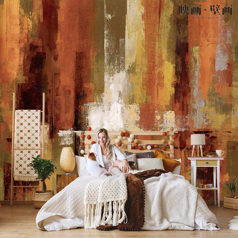 Nordic Personality Hand-painted Graffiti Art Oil Painting Living Room TV Background Wall Paper Seamless Sofa Wallpaper Mural Wall Cloth
