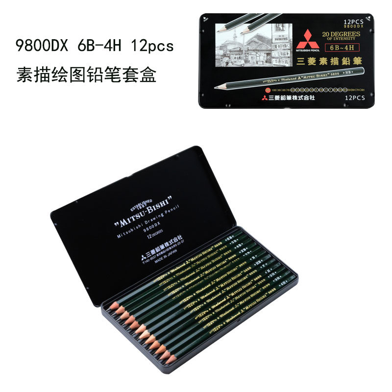 Japan UNI Mitsubishi pencil 9800 iron case suit drawing pencil drawing pencil drawing pencil fine art wood pencil buy to send import eraser