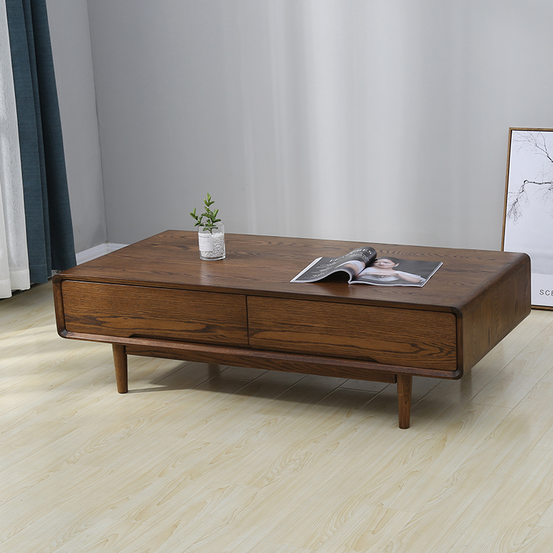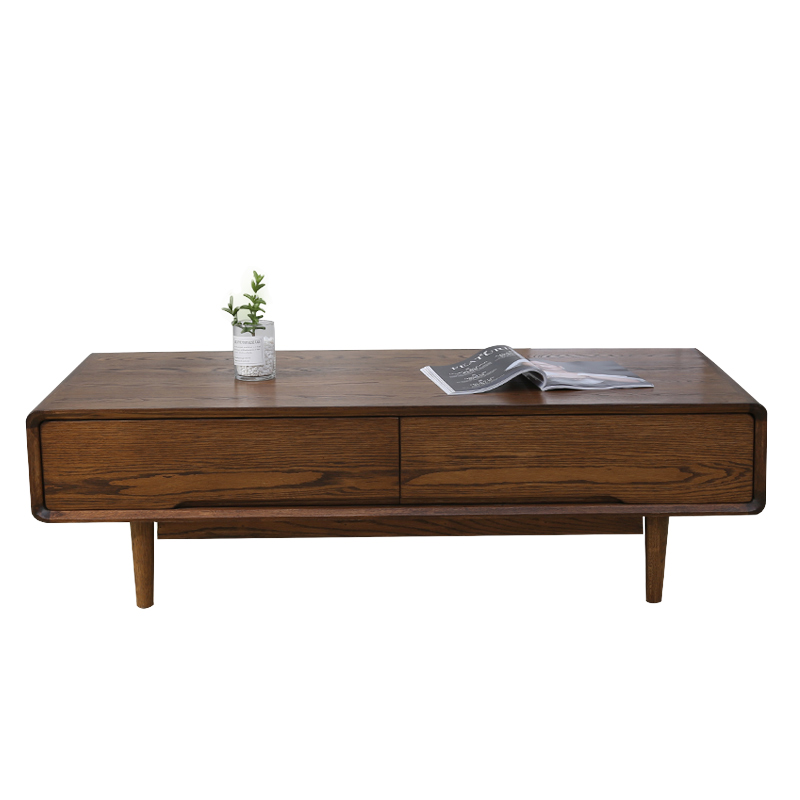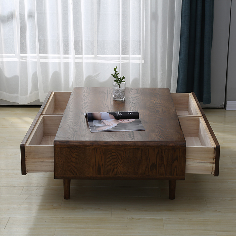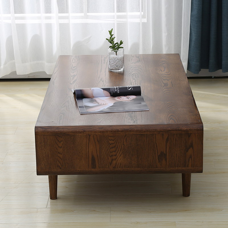 Living room solid wood tea table oak wood original wood color small family type drawer tea table Nordic modern minimalist environmental friendly living room furniture