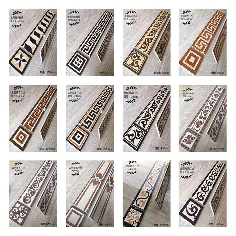 Living and dining room floor tiles and floor plan microcrystalline waveguide wire gold-plated wave line 150*800 80*800 matching corner