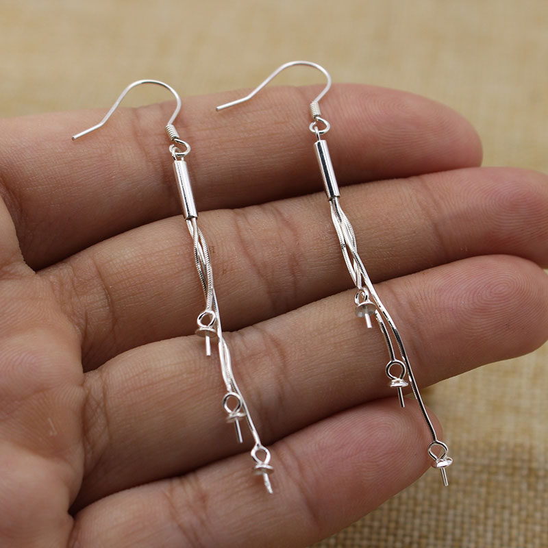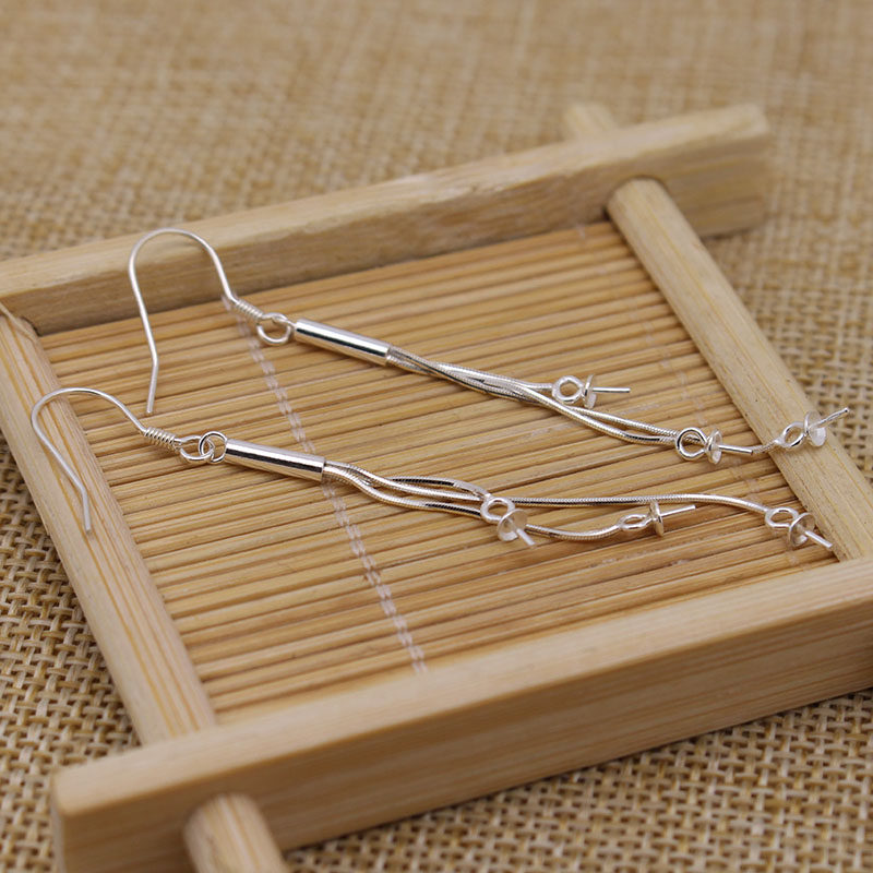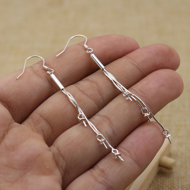 S925 Silver Ear hook wire Drop Earrings Beads pearl DIY accessories Drop earrings Wire accessories Snake bone chain Asymmetric earrings