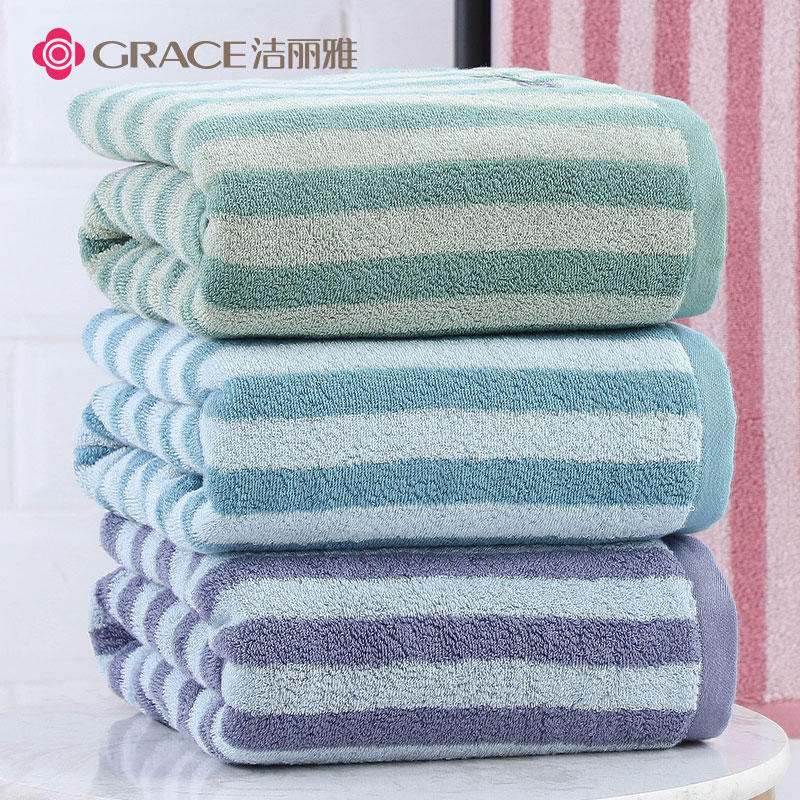 Jie Liya bath towel pure cotton adult men's and women's children's soft and strong absorbent stripes household plus thickened bath towel