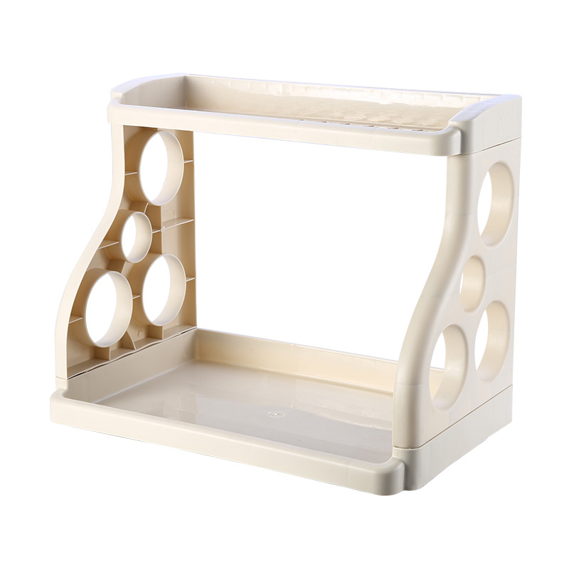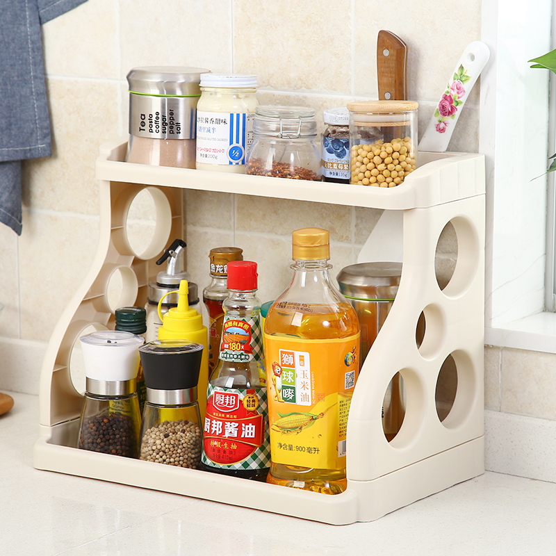 Double-layer kitchen rack seasoning storage rack floor-to-ceiling plastic knife rack seasoning seasoning rack to put things on the shelf