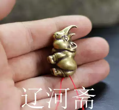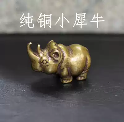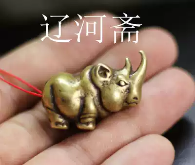 Liaohezhai retro antique bronze small rhinoceros pure copper handpieces play ornaments old copper vintage paste handles