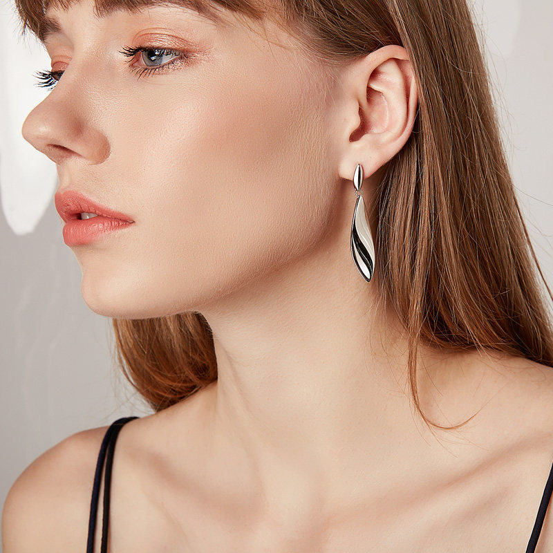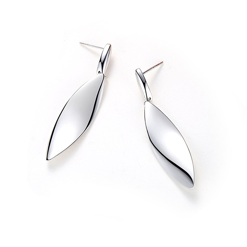 High level sensual exaggeration suitable for round earrings pure silver ear pendant atmospheric quality long version of lean foliage Ear Needle Ear
