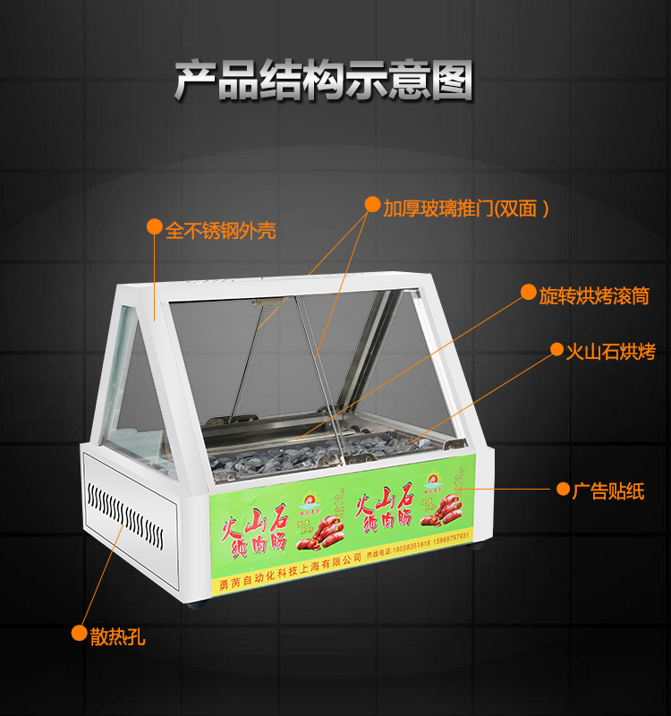 Dual-purpose sausage grilling machine commercial volcanic stone sausage grilling machine drum two-in-one sausage grilling machine hot dog machine sausage machine grilling sausage